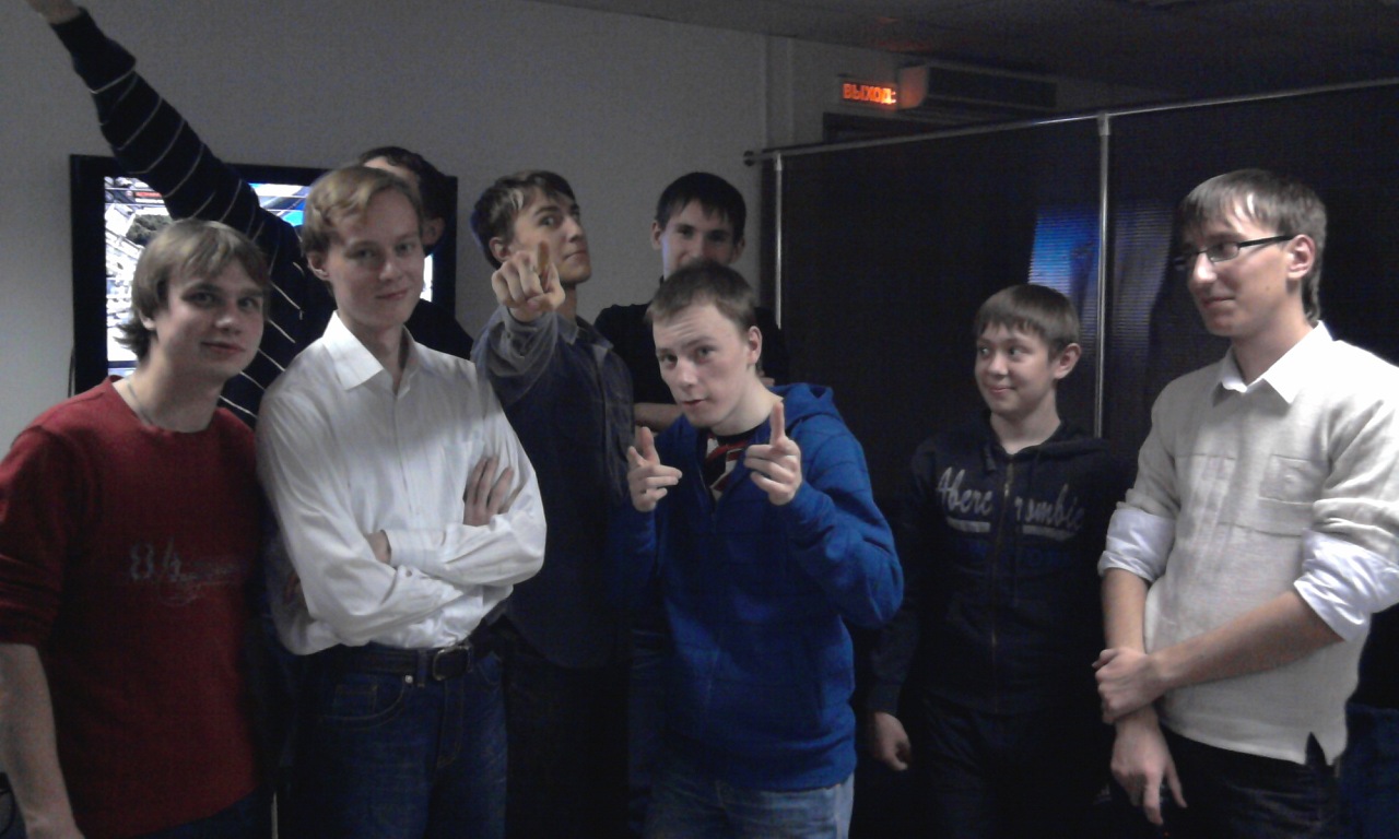 Слева-направо: Tob, Term1n, Tukzar (тычет в небо за спиной Термина), Afefad, D2 (прячется за мной), Sly, Maxcost, Popopo.