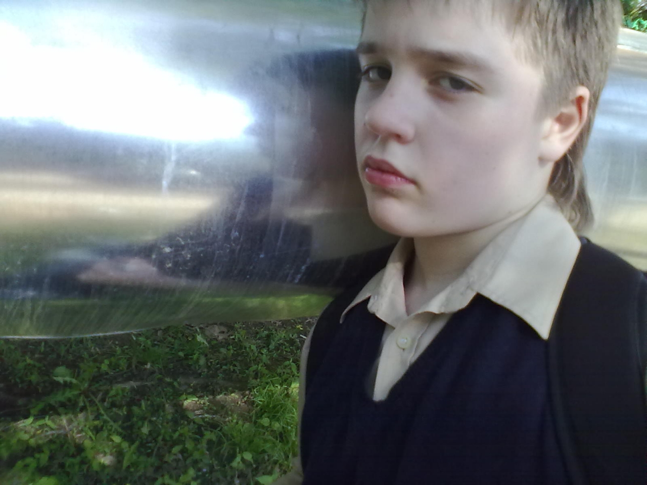 Фотошопом я пользоваться не умею,так что просто сфотографировался около трубы в солнечный день)